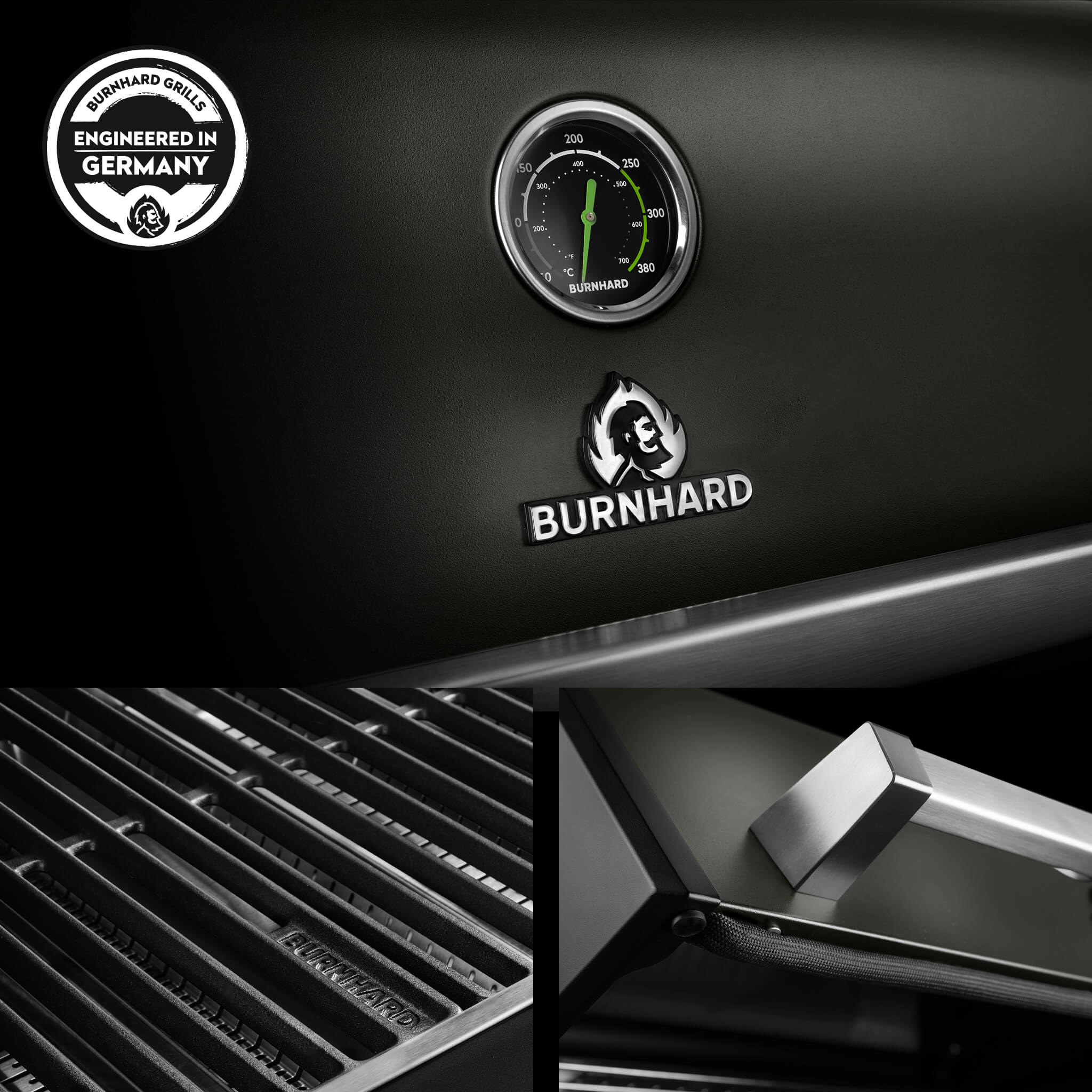 Der BURNHARD FRED Deluxe Gasgrill 3 Brenner Series 4 in der Green Edition mit Gusseisenrost kombiniert maximale Leistung mit einem modernen und markanten Design. Die matte Pulverbeschichtung in der Green Edition sorgt für eine besondere Optik während die hochwertige Konstruktion und starke Leistung echtes BBQ auf Profi Niveau ermöglichen.