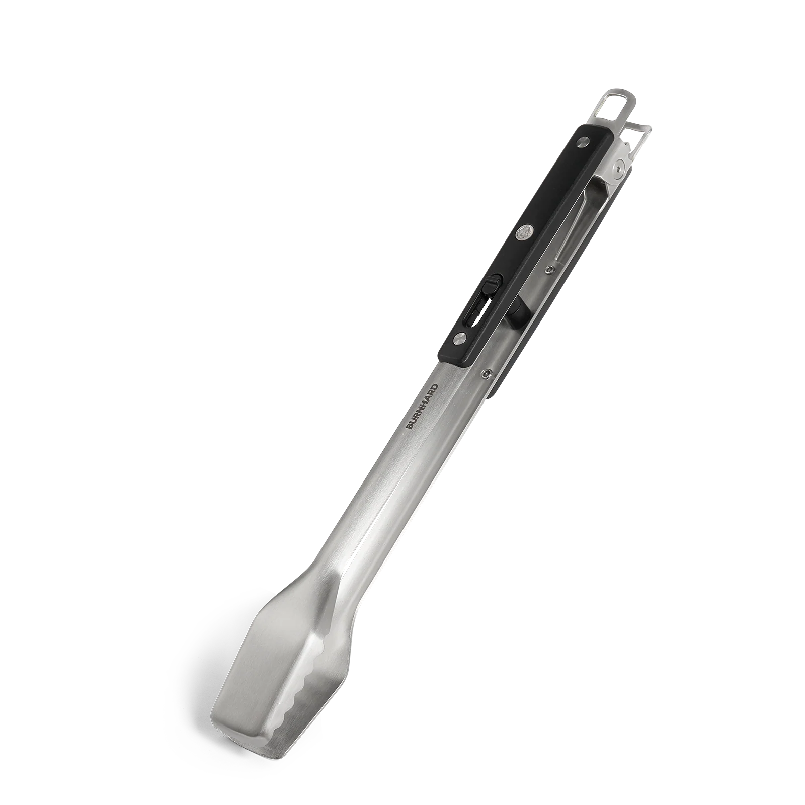 Die Grillzange ist 46,5 cm lang und verfügt über einen Feststellmechanismus zur platzsparenden Aufbewahrung. Spachtel, Gabel und Bürste bieten optimale Funktion - ob für flache Patties, große Fleischstücke oder gründliche Reinigung. Alles kompakt in einem Set.