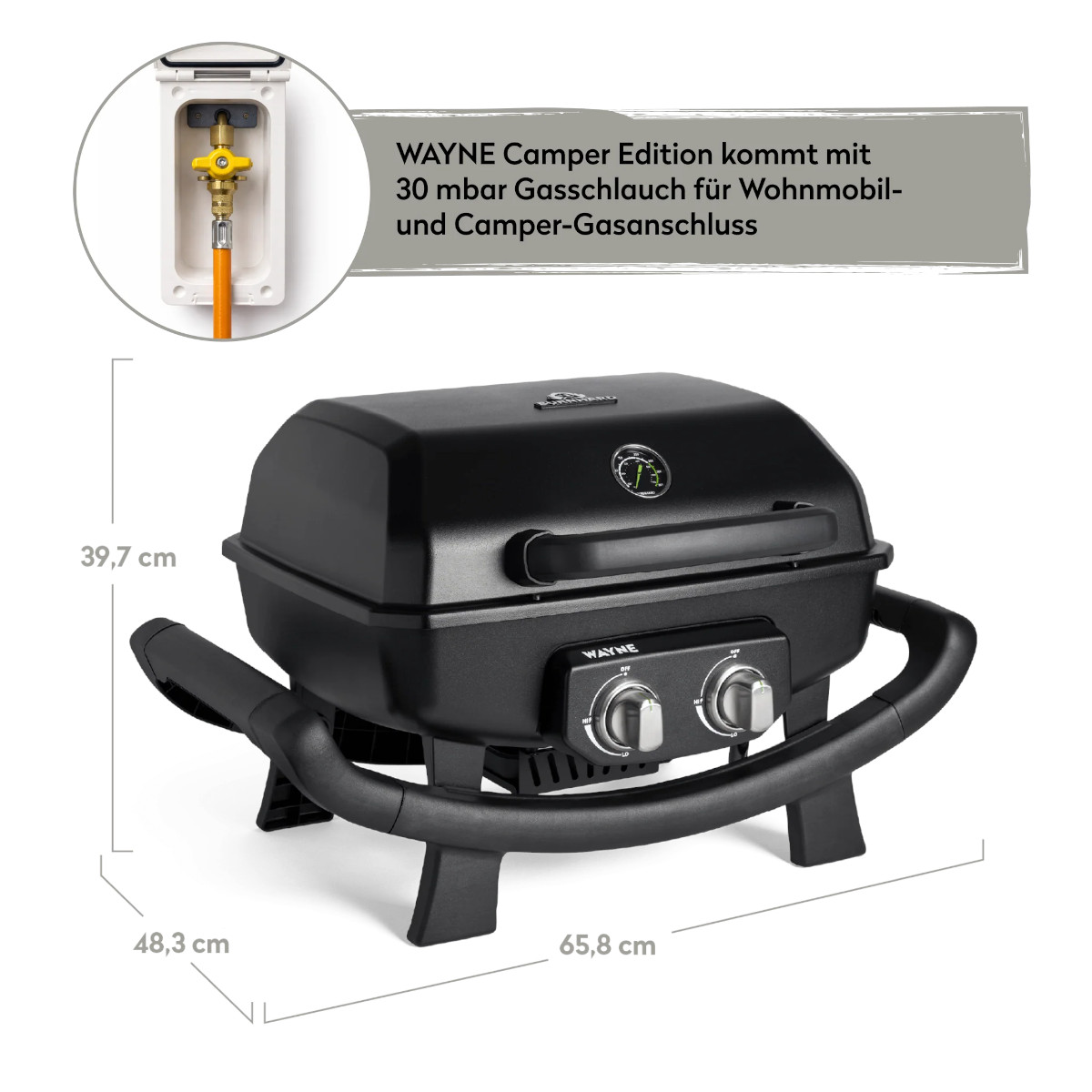 Produktinformationen "BURNHARD WAYNE Grill 2 Brenner Camper Edition für 30 mbar Außensteckdose"