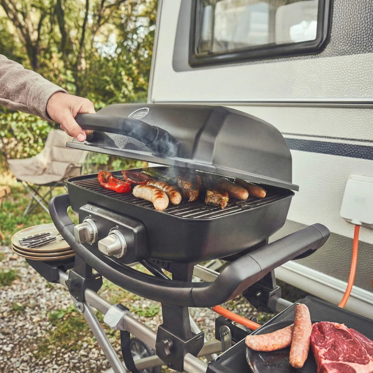 - Ausstattung: 2 individuell steuerbare Edelstahlbrenner, Kickstarter Piezozündung, große Tragegriffe